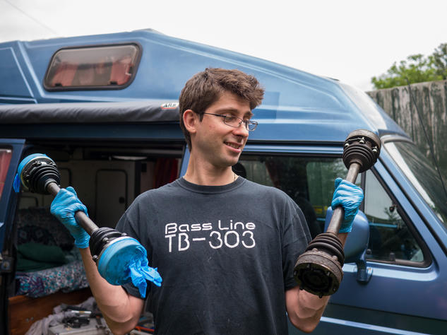In between trips Andrew has been slowly restoring her and by now had most components in pieces at one time or another. In 2017 he rebuild the engine and in 2018 she got a shiny new paint job. There's always something new to thinker with on the van and it's a task that never really ends.