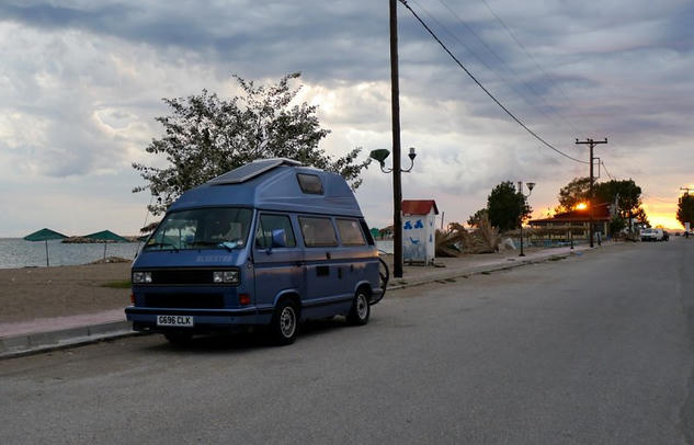 From Delphi we drove west and parked up by a beach south of Mesolongion for a night of free camping. After enjoying the lovely sunset we managed to get some WiFi from a nearby bar and catch up with the blog.