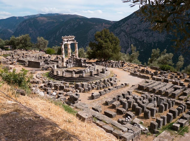 It’s a place of many legends, but in a nutshell there was a crack in the mountain producing an intoxicating gas. The gas induced a trance like state in those who inhaled the right quantity and perhaps gave glimpses into the future. The Greeks in their wisdom created an elaborate temple on top of the crack. A female Pythia was chosen (the oracle) who would sit on a tripod, get high and give prophecies to the pilgrims. The Oracle was most active around 6 century BC and started winding down near the beginning of AD. I guess the gas had run out.