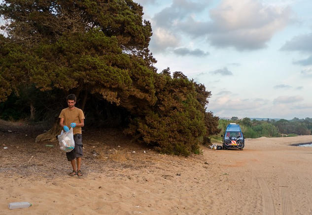 Unfortunately the place was badly trashed when we arrived, but it was such a good spot otherwise, that I immediately set on a tidy up mission. I collected a few trash bags full of old nappies, condoms and plastic bottles while the one Greek guy sitting on the beach looked with amusement.