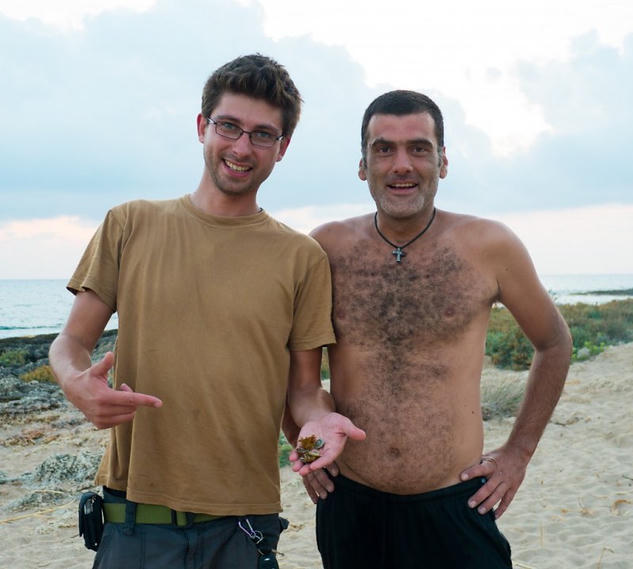 After we made the place more plesant we cracked open a beer and then it was our turn to look at the Greek guy with amusement as he was doing something unusual. He was walking around the rocks in the shallow water, picking up mysterious things out of the sea and eating them. Our curiosity couldn’t bare any longer and we had to inquire. Tholos, as our new Greek friend is called, was more than happy to show us what he was doing and soon, with his guidance, I found myself rummaging through the rocks looking for small shell creatures, which taste a bit like mussels.