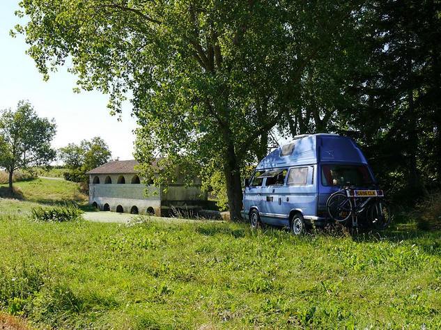 From there we hunted for a nice place to camp for the night out of everyone’s way. It took us around an hour until we found a beautiful spot surrounded by fields, sunflowers and a very old looking building half submerged in a small lake. The building we named ‘Toad Castle’ was found to be actually called Lavoir De Chaugey built in 1835 and was a wash house once upon a time.