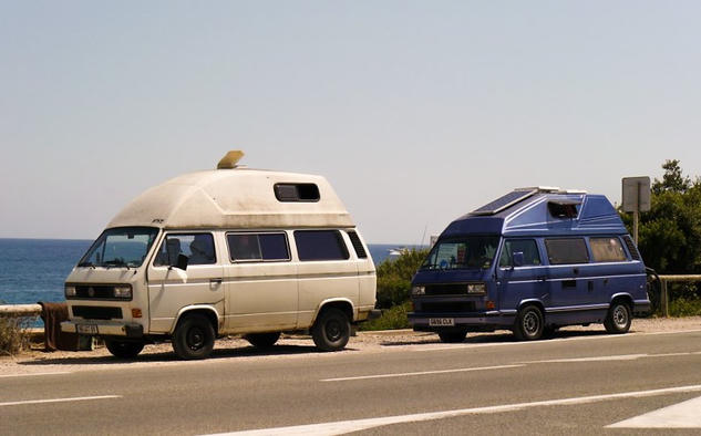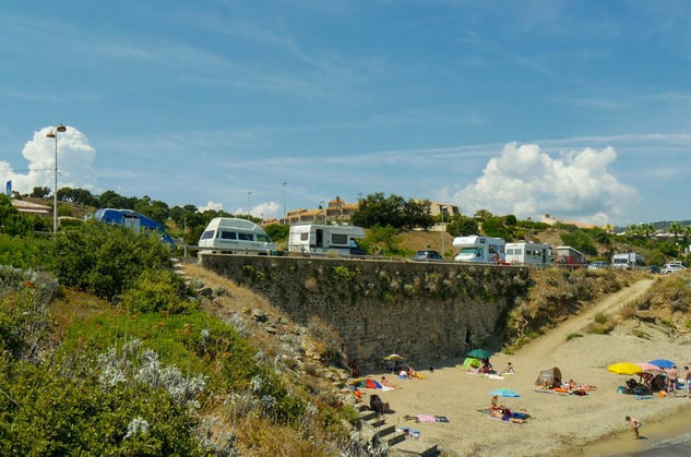 Driving east along the coast things didn’t look much better. Most of the coast was taken up by hotels and resorts. Parking, either expensive or not allowed for campers. We were slowly loosing our hopes and thought of driving back inland to spend the night on motorway services. Then we spotted a white T3 parked by the side of the road, right by the sea. We pulled up behind it.