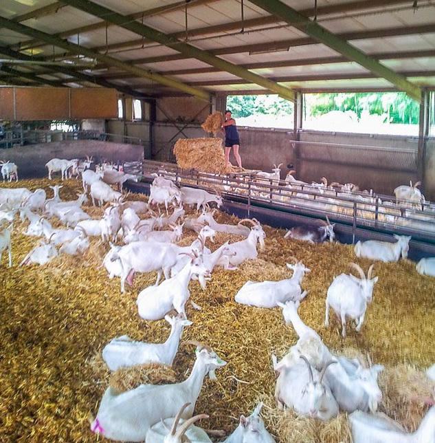 The farm made goat cheese on site and would sell to restaurants and at farmers markets. It seemed a large scale operation with goats rotating between various barns and the surrounding fields. We also offered to help around the farm in thanks for letting us stay. The next two mornings we were in the thick of it in a barn full of goats. We were tasked with laying the barn out with fresh straw. A messy but fun job. The goats would eat anything and gave my shorts a good go!