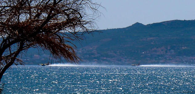 On discovering we took a liking to the local wine later dropped us off some in a big coke bottle to share back at the van. We had seen a fire in Greece already and he said they were a big problem here. On one of the days we saw planes dropping down to the sea and scooping up water to extinguish a nearby forest fire.