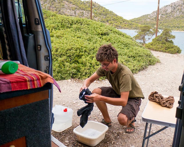 The lake had a small four meter opening from the sea and a nice beach dotted with trees. The water was beautifully still and we could watch the crabs and fish from above. We stayed free camping for two nights with lots of the lake’s activities to watch…. scuba diving, water skiing and fishing. It was also great for expanding our shell collection.