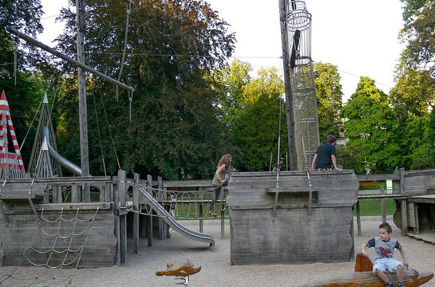 One of the park highlights for me had to be the pirate ship and water cascades in an amazing free kids area. We had a few beers, waited until after 7 when all the kids had gone and then ran around…