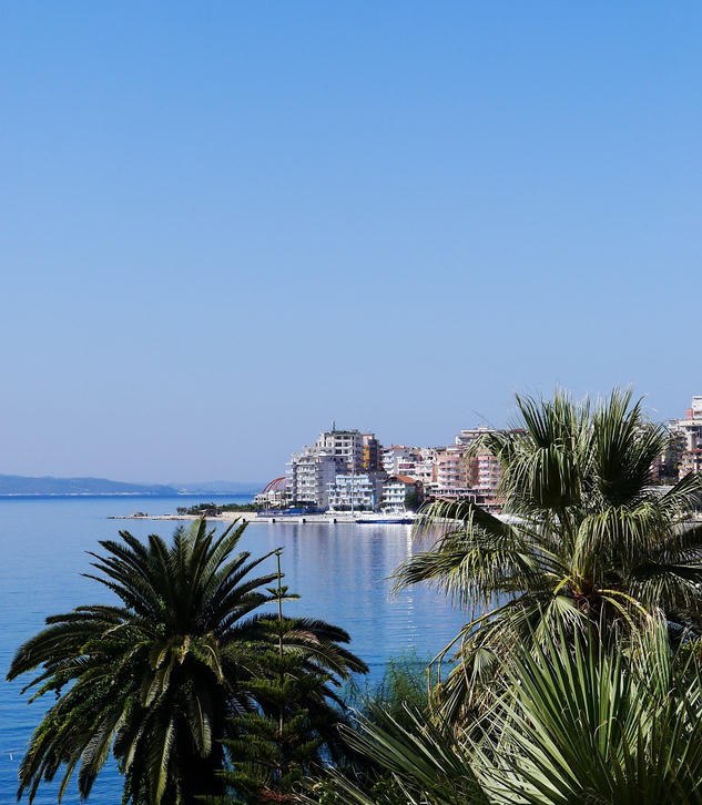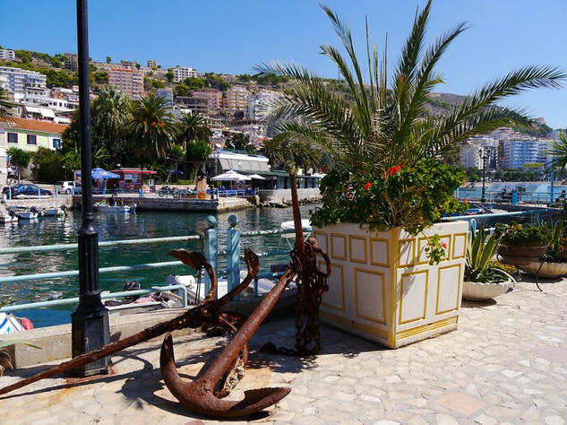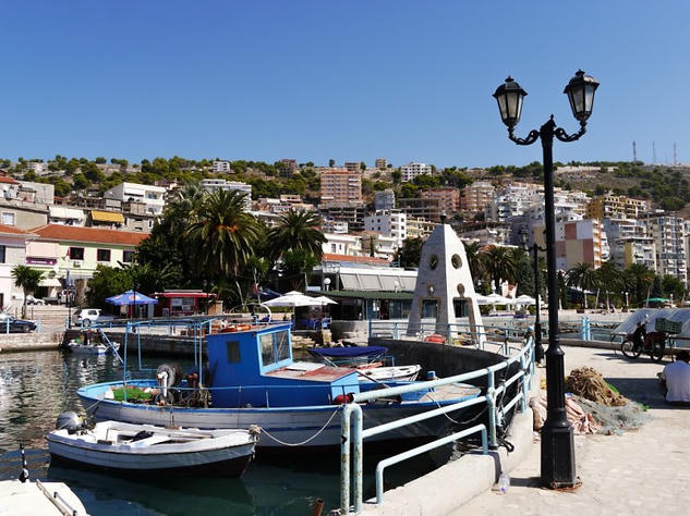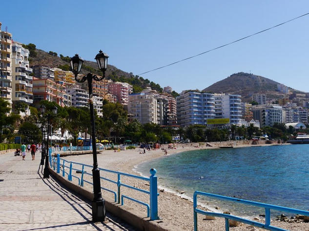 From the border we headed up the coast to Sarande and luckily the way was well sign posted. This was a relief as road signs are new in Albania and both the sat nav and maps are all out of date as new roads are being built very quickly. In Sarande we stopped for lunch and had a walk around the town. It was attractive around the seafront with the clear blue Ionian sea and flowers blooming but the suburbs were developing quickly and were not so nice. I was surprised to see quite a few tourists wandering around as you don’t often hear of people going on holiday in Albania.