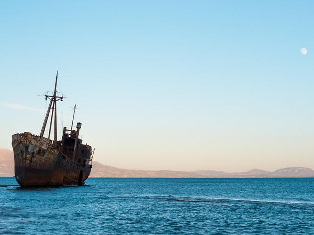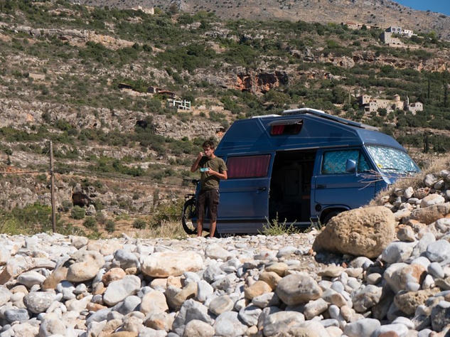 The next stop took us out of Mani to Valtaki beach, near Gythio. where we camped just off the beach next to the Dimitrios shipwreck. You could walk right up to it and peer inside through its rusty shell.