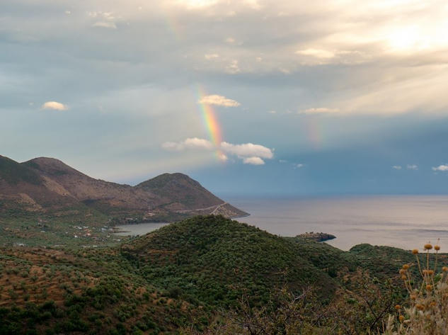 After a very steep drive around Mani we were caught in a storm on the mountainside. We sat the storm out off the main road we headed off again up the east coast greeted by a beautiful rainbow. This was the first rain we saw in Greece. It was quite an epic storm.